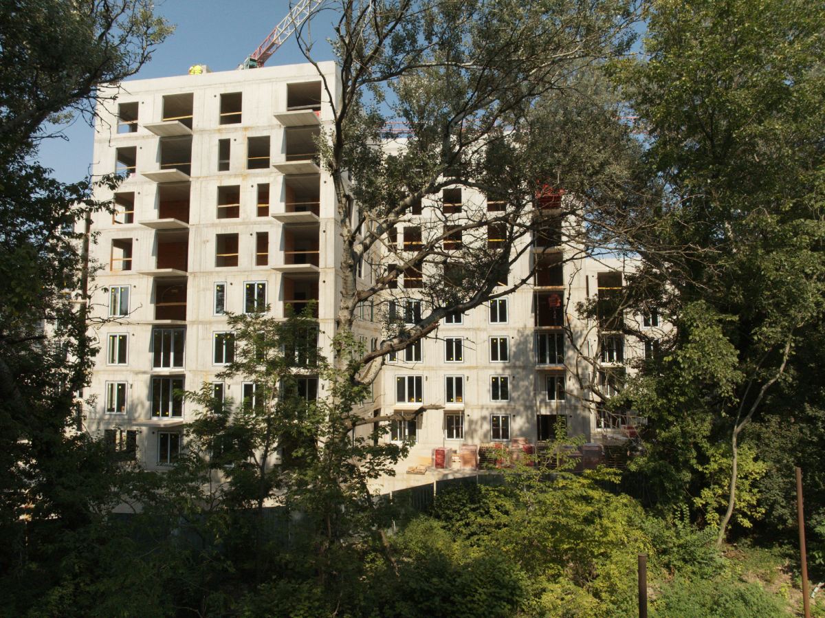 • Omieta sa zvonka aj zvnútra: V exteriéri sa začali lešenárske a omietacie práce, zatiaľ čo v bytoch sa už finišuje s vnútornými omietkami.